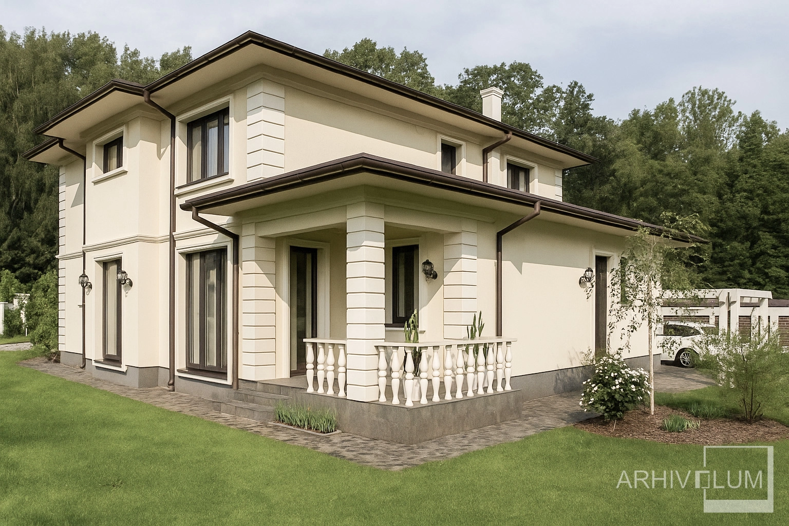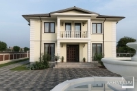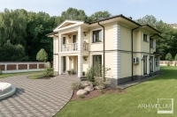 Acest proiect a avut ca și temă aspectul clasic care implică simetrie și ordine în volumetrie și în fațade. Pentru a merge la sigur privind aspectul casei cu pretenție de vilă, beneficiarul a dorit o împărțire echilibrată și un aspect clasic, aspect de construcție impunătoare susținută de bosajele de colț, de ancadramente, de baluștrii din beton ai balocanelor dar și de pilaștri care marchează intrarea în locuință. Acoperișul cu sageacul elegant susținut de cornișa din polistiren, împreună cu geamurile mari dezvoltate pe înălțime crează o imagine sobră și de impact.