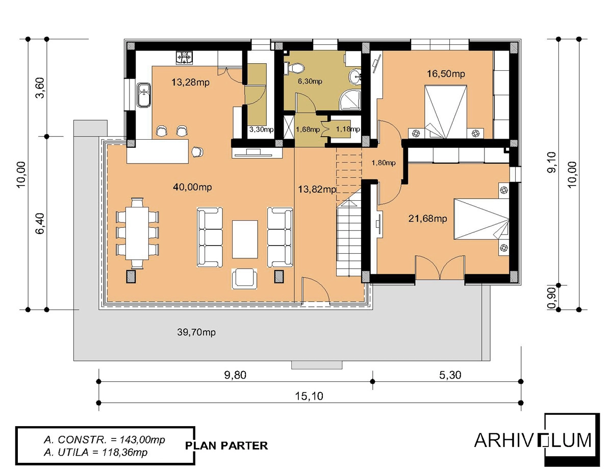 Casa individuală cu o suprafață utilă interioară de de 181mp, suprafață fără terase, este soluția perfectă pentru o familie de cinci persoane.