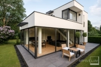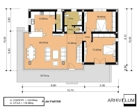 Etajul parțial are acces către terasa circulabila dezvoltată deasupra camerei de zi. Locuința modernă prezentată se poate construi atât în mediul urban cât și într-o zonă turistică cu un peisaj atrăgător.