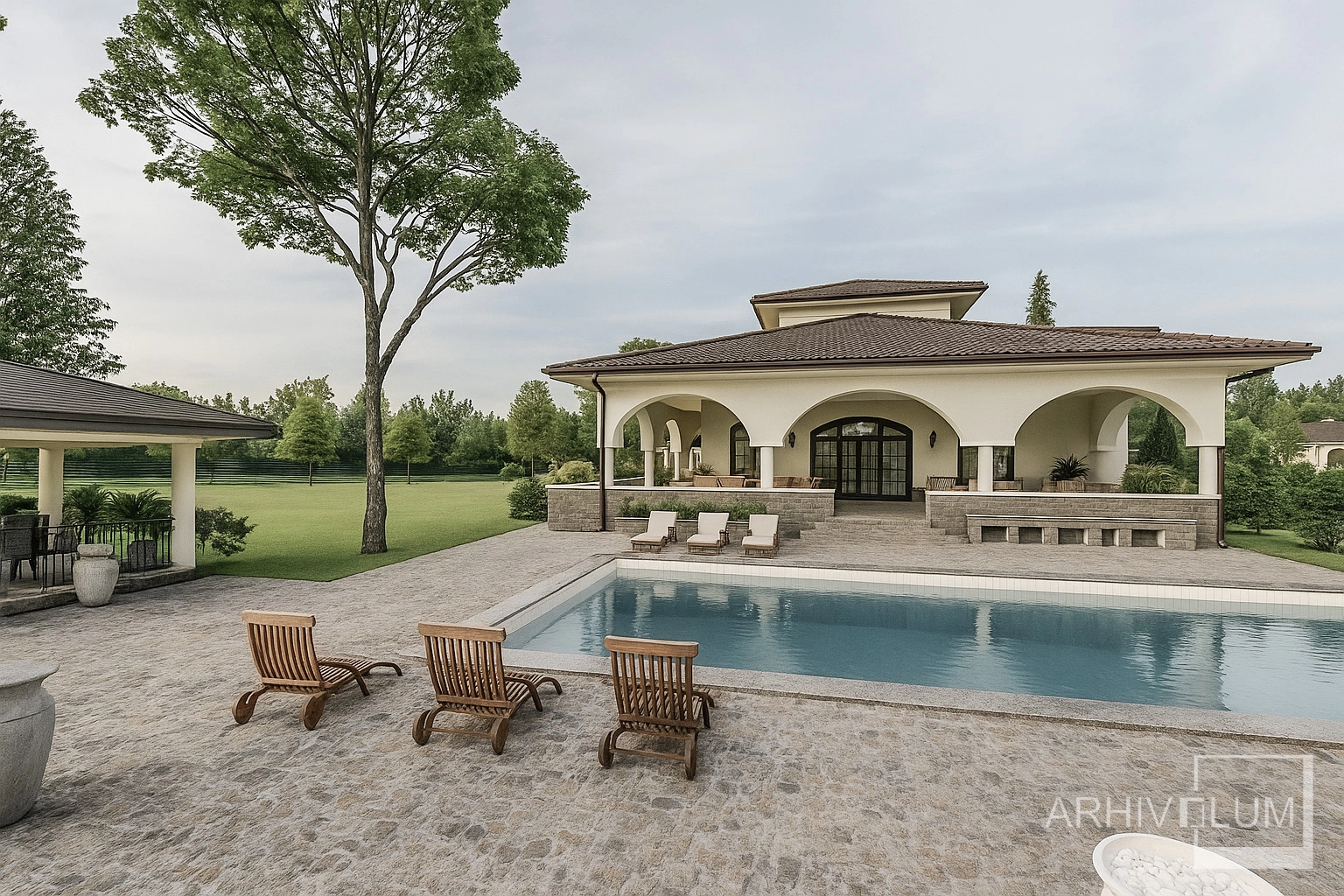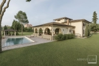 Proiectul de vilă prezentat reprezintă o reședință de lux ce își propune să satisfacă nevoiele și necesitățile unui tip de locuire boem și retras. Acest proiect de vila de lux cuprinde casa principală tip conac, locuinla paznicului, grajdul de cai pentru echitatie, piscina, foișorul, terenul de tenis și alte amenajări necesare pentru un trai izolat.