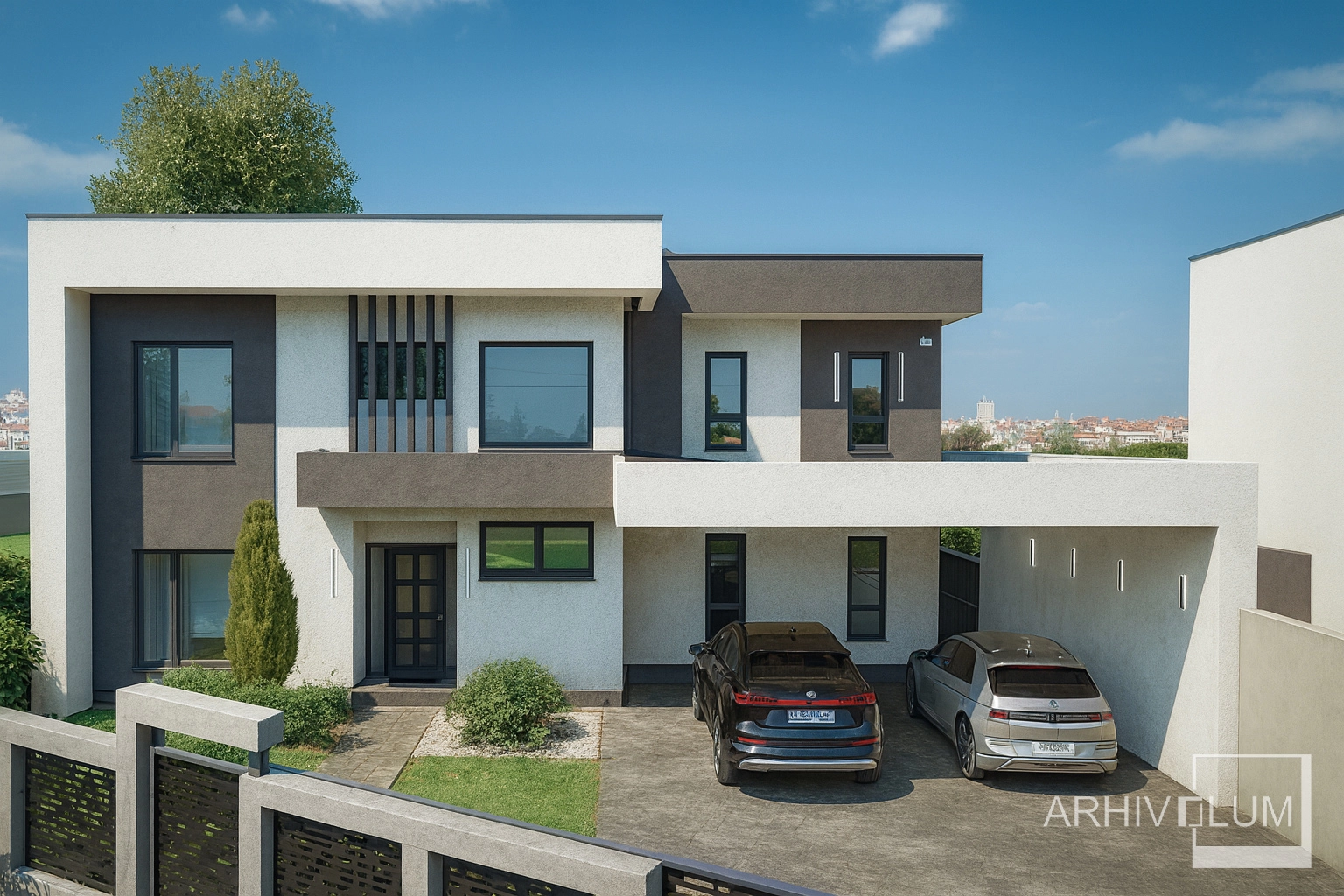 Acest frumos proiect este o casă modernă, în stil cubist, locuință cu un teren generos amenajat cu piscină, pergole și spații verzi. Proiectul prezent va fi implementat în orașul Pantelimon din județul Ifov, pe un deal ce oferă o perspectivă încântătoare asupra lacului. Jocul volumetric echilibrat cât și combinația de culori sobră este soluția actuală a tipului de arhitectură modernă.